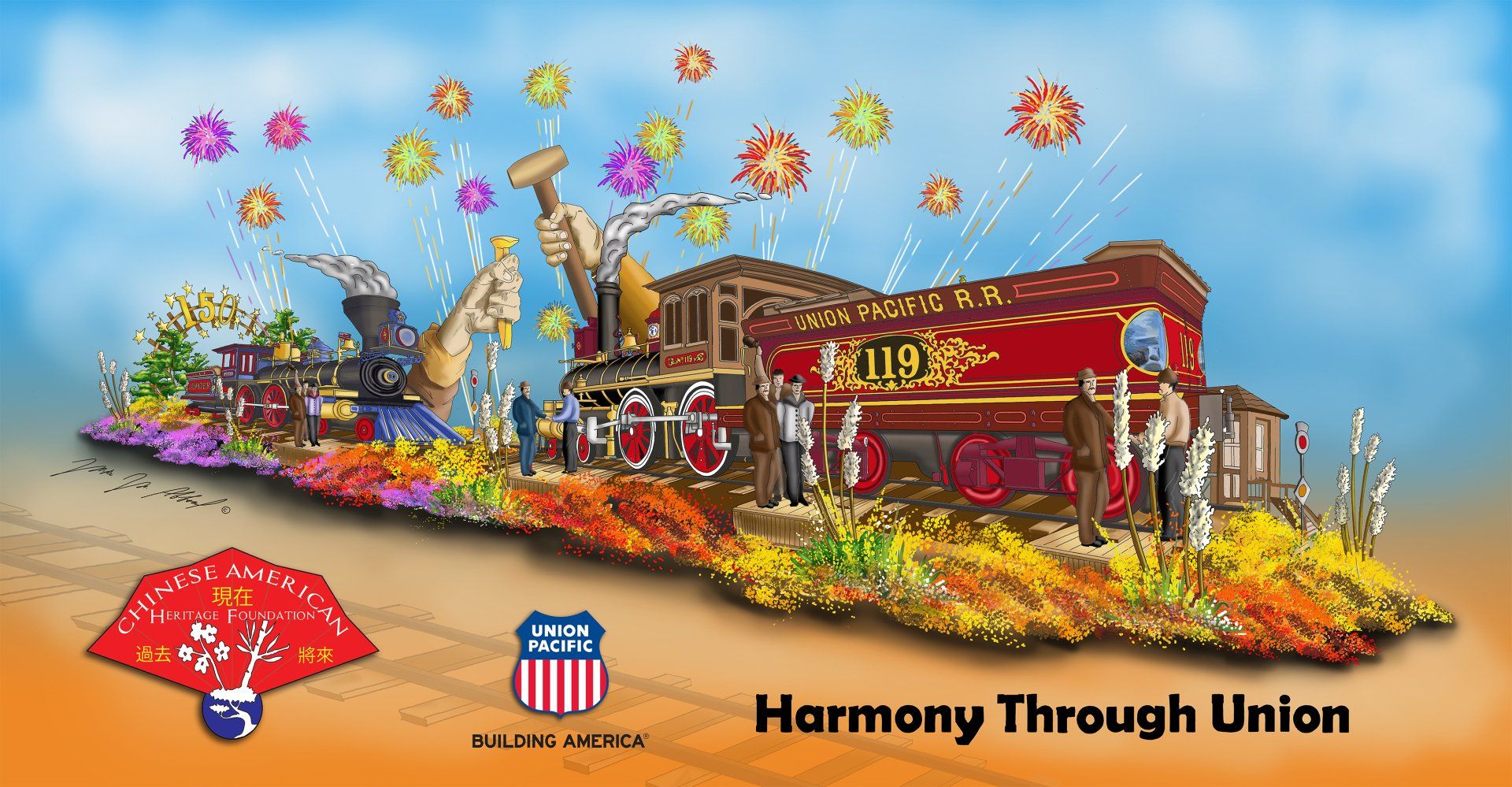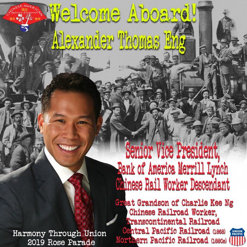 PANGEA sponsored a float in the Pasadena Tournament of Roses Parade, on behalf of the Chinese American Heritage Foundation, to celebrate the sesquicentennial of the completion of the Transcontinental Railroad. All messaging, programming, graphics, fundraiaising campainging, volunteerism, live events, and outreach for the float project were under the aegis of PANGEA.